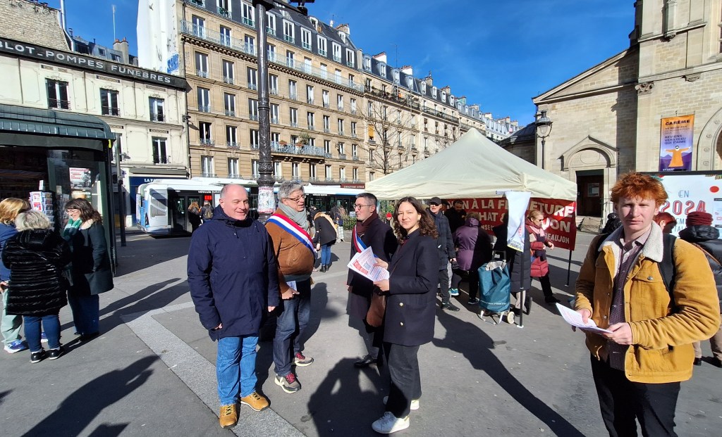 Ce samedi les passants qui déambulent place Jules Joffrin, en face de la Mairie du 18e arrondissement de Paris, sont surpris par le nombre de personnes qui leur tendent un tract. Bichat ? Beaujon ? Beaucoup se déclarent surpris par le thème du feuillet recto-verso du Comité de défense des deux hôpitaux publics. « Bichat va fermer ? Première nouvelle. »